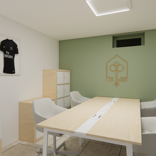 L’aménagement s’articule autour d’une salle de réunion pensée comme un véritable espace de confiance.